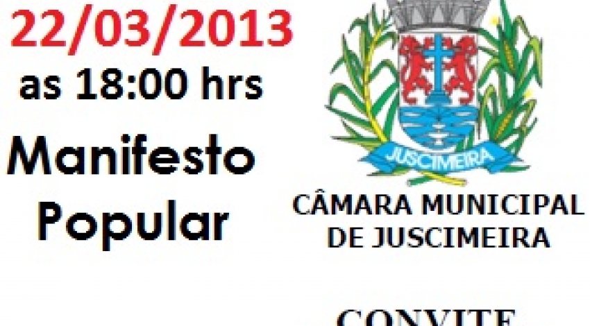 A sociedade organizada representada pela presidência da câmara municipal de Juscimeira na pessoa Srª Silvanei Pereira Correia Cavalheiro, convida a participar de um manifesto popular.