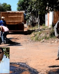 Na manhã desta quinta-feira (22/03), os vereadores Manoel Fagundes (Neco), Valdinei Costa (Jeguinho), estiveram acompanhando as execuções de tapa-buracos no bairro Beira Rio.
